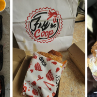 Seasoned Beef Fat Fries, Fried Chicken, Creamy Coleslaw, Sweet & Spicy Pickles, Coop Sauce